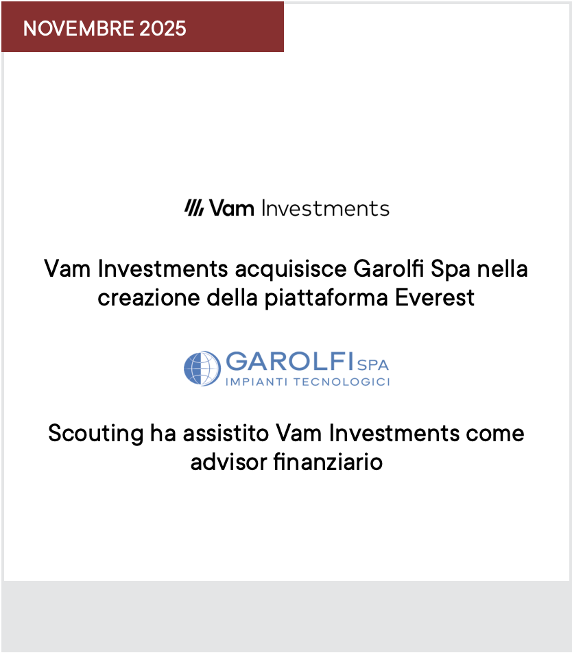 SCOUTING CAPITAL & FAMILY ADVISORS ASSISTE VAM INVESTMENTS NELL’ACQUISIZIONE DI GAROLFI NELL’AMBITO DELLA CREAZIONE DELLA PIATTAFORMA EVEREST